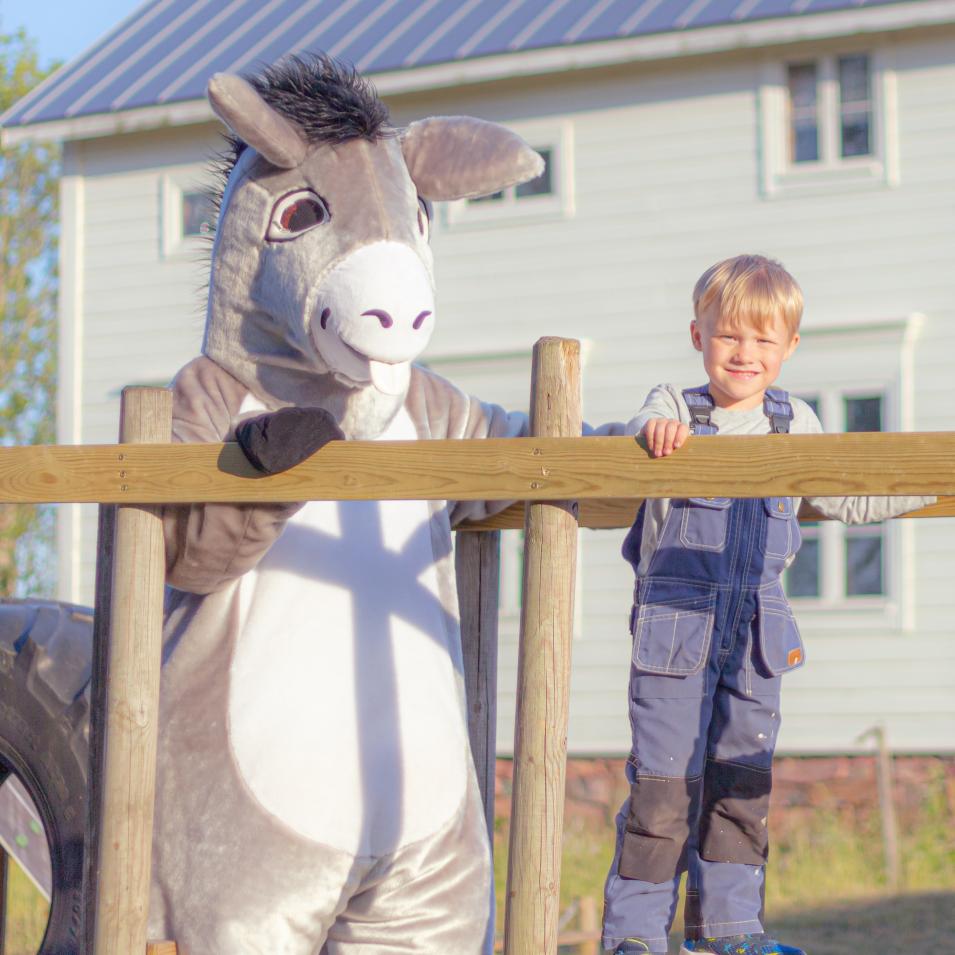 I vår manngårdsbyggnad från 1860 kan du träffa gårdens fabel, Åsnan Uno i sitt Vita Hus, ett spännande och roligt tidsäventyr som är anpassat för barn.